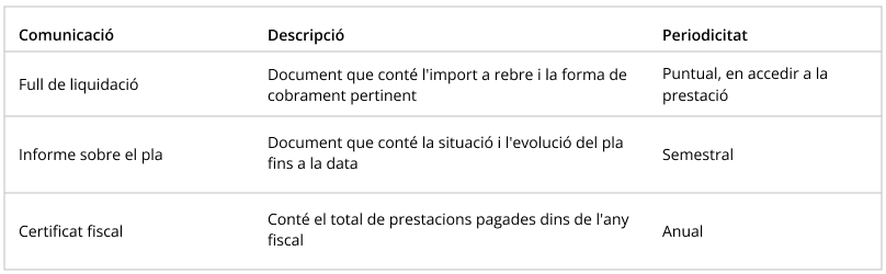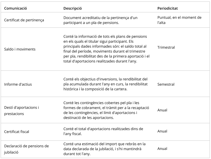 en el seu lloc, rebràs (o tindràs a disposició a través de VidaCaixa Aporta+) les següents comunicacions: