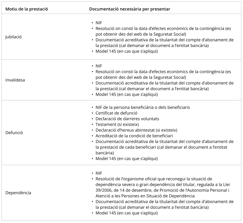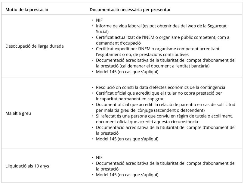 D'acord amb el contracte, podràs tenir accés a la prestació per diferentes motius. Per a qualsevol cas, podràs anar presencialment a l'oficina CaixaBank més propera i realitzar el tràmit.